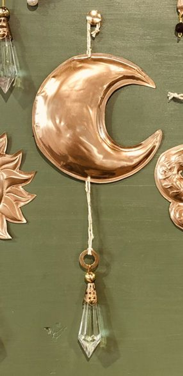 Suspension murale, lune, agrémentée d'une perle et d'une papille en cristal véritable. (pièce ancienne, autrefois destinée à un lustre)